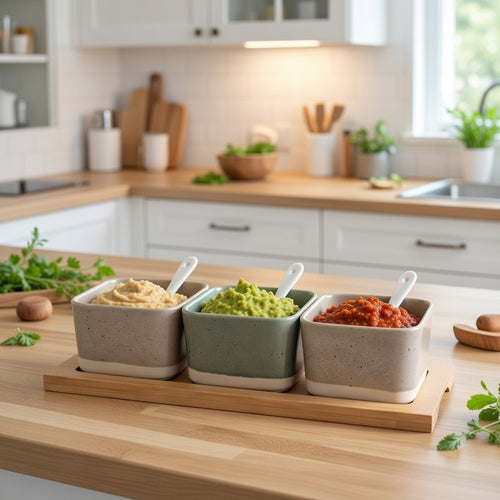 Appetizer-Set DKD Home Decor (29 x 11,5 x 1,5 cm) Porzellan Mehrfarbig Bambus Skandinavisch